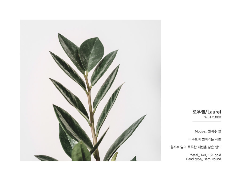 저희가 선택한 웨딩밴드는 **'로우렐(Laurel)'**이라는 디자인인데요,